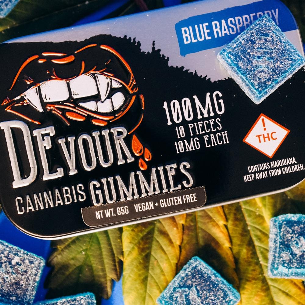 Devour Gummies Blue Raspberry 100mg THC per Pack | 10mg THC per Piece
