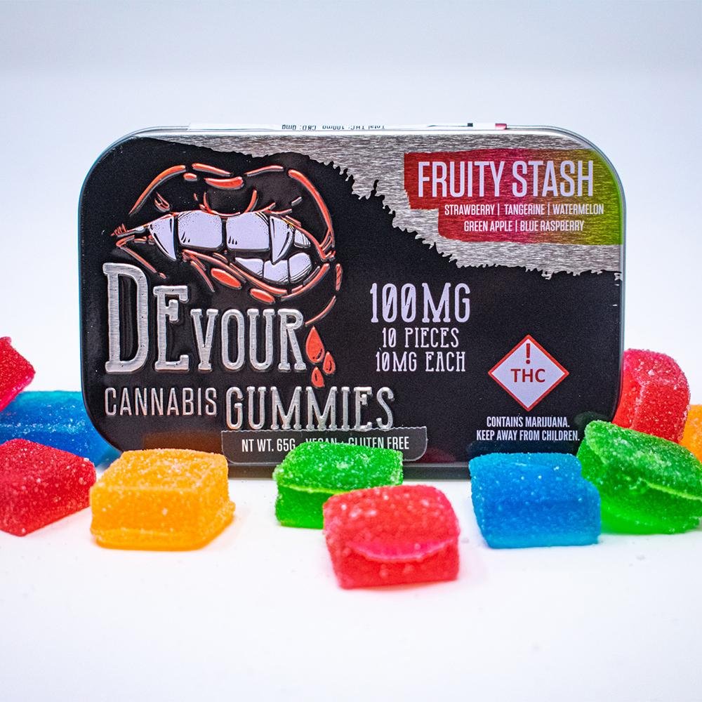 Devour Gummies Fruity Stash 100mg THC per Pack – 10mg THC per Piece