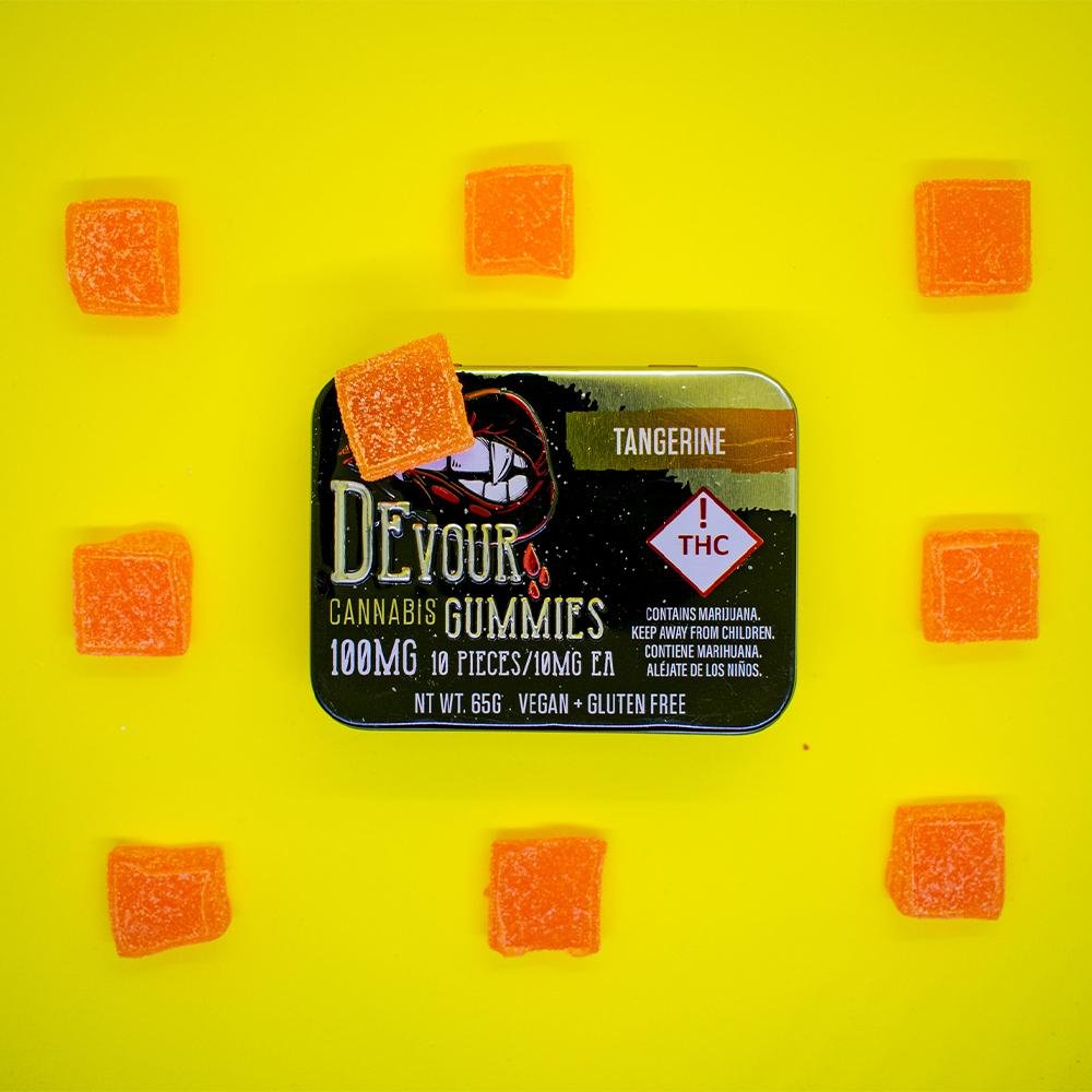Buy Devour Gummies Tangerine 100mg THC Per Package – 10mg THC Per Piece: A Refreshing and Potent Cannabis Experience