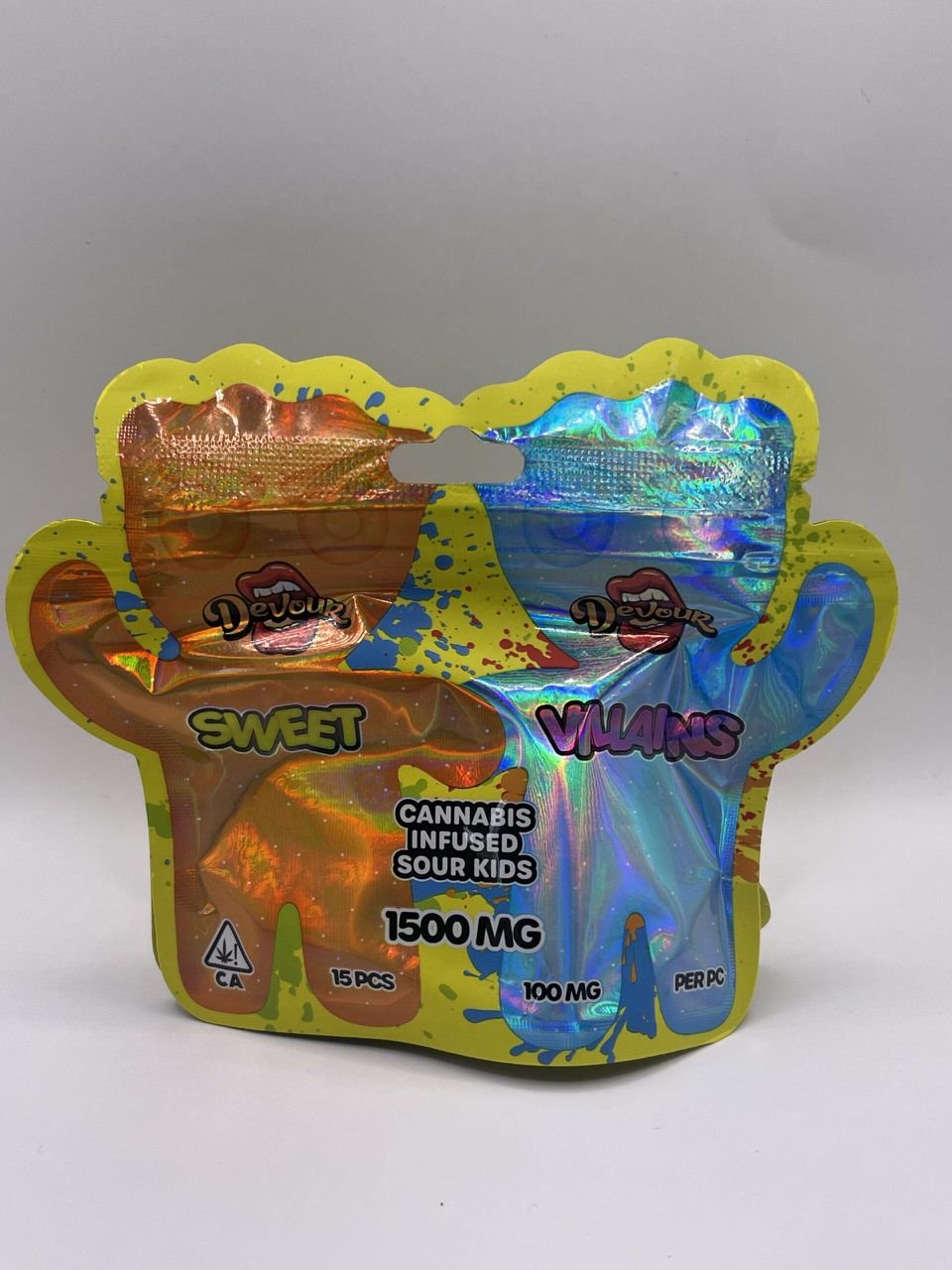 Devour Sweet Villains 1500mg Cannabis Infused Sour Kids—a bold, flavorful treat designed for cannabis enthusiasts who crave a delicious, long-lasting buzz